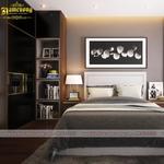 Thiết kế phòng ngủ theo phong cách hiện đại hướng đến sự tối giản và tiện nghi. KTS đã sử dụng gam màu trung tính làm chủ đạo để làm nổi bật nên vẻ đẹp sang trong, tinh tế của căn phòng. Nội thất trong phòng ngủ hầu hết đều được thiết kế đơn giản, theo hình khối, được kết hợp với nhau tạo nên không gian nghệ thuật, mang đạm dấu ấn cá nhân của chủ nhà.