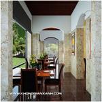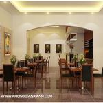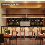 Quầy bar trong nhà hàng được thiết kế đơn giản với tông màu chủ đạo là màu nâu gỗ. Chiếc tủ rượu lớn tiện nghi, đẹp mắt. Mặt ngoài quầy bar được ốp đá làm tăng nét sang trọng, tinh tế