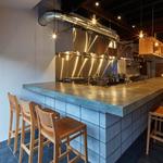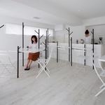 Thiết kế quán cafe độc đáo với những thanh cột cao lấy ý tưởng hình cây nhỏ có sơn đne nổi bật trong không gian tông trắng. Sàn nhà gỗ tông trắng kết hợp cùng quầy bar trắng làm nổi bật lên thiết bị nội thất được dùng cho việc pha chế cafe trong không gian căn phòng