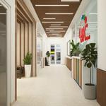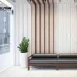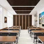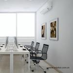 Căn phòng có diện tích khá là nhỏ, vì vậy các NTK ưu tiên thiết kế phòng làm việc hiện đại và đơn giản. Với tone màu trắng chủ đạo kết hợp cùng với cửa sổ lớn tận dụng được nhiều ánh sáng làm cho căn phòng trở nên sáng, dễ chịu và sang trọng hơn. Những chiếc ghế màu đen được sử dụng để làm điểm nổi cho căn phòng. Cây xanh tiếp tục được sử dụng để trang trí và mang đến cảm giác dễ chịu.