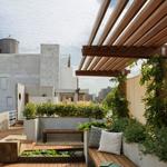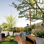 Nghe hơi “điên” một chút, nhưng việc bạn có cả "đồng cỏ" tại chính sân thượng nhà mình lại chính là một điểm thú vị. Trồng cỏ xen lẫn một vài loài hoa dại sẽ giúp bạn có một sân thượng đẹp hoang dại, dân giã, tự nhiên. Bên trên các kệ cao bạn có thể trồng những chậu hoa nhỏ và xếp thành hàng dài. Đây giống như một ốc đảo thú vị dành cho những buổi thư giãn.