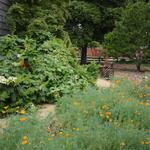 Dọc con đường được lát bằng đá thạch anh và gạch dẫn lối vào nhà, kiến trúc sư đã bố trí những mảnh vườn nhỏ xinh vừa để trang trí vừa tạo bóng râm cho ngôi nhà. Với đa dạng loài hoa và các loại cây khác nhau, khu vườn này sẽ khiến ngôi nhà trở nên thật nổi bật dưới ánh nắng vàng rực rỡ và làm cho những vị khách lần đầu ghé thăm cảm thấy gần gũi và vui mắt.