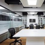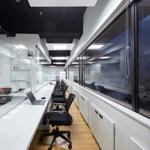 Hành lang nhỏ hẹp cũng có thể sử dụng kê một bàn làm việc dài, đây là một cách tận dụng không gian rất khéo léo. Diện tích không lớn nhưng vẫn có thể tạo một không gian làm việc khá thoải mái. Nội thất màu trắng mang đến nét hiện đại và tươi sáng.
