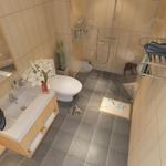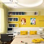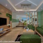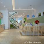 Không gian sinh hoạt chung được thiết kế theo phong cách hiện đại vô cùng ấn tượng. Điểm nổi bật của không gian chính là phong cách tranh trí khá ấn tượng, màu sắc tươi mới, sáng tạo được sử dụng khá tự nhiên, kết hợp lại với nhau tạo nên một không gian sinh hoạt vô cùng đặc sắc và tươi mới. Cách trang trí các vật dụng và nội thất trong phòng cũng cực kỳ phong cách, mang tính nghệ thuật cao, nổi bật là chiếc đèn chùm với kiểu dáng đẹp mắt và ấn tượng. Một ưu điểm nữa của không gian sinh hoạt chung đó là thiết kế khung cửa kính nhìn thẳng ra bên ngoài vừa tận dụng được ánh sáng, lại vừa xem như là một nơi để ngăm không gian bên ngoài khiến cho không gian không còn kín nữa mà trở nên mở hơn, kết nối với bên ngoài nhiều hơn.