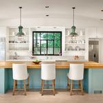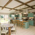 Nhà bếp rộng rãi toát lên vẻ đẹp mộc mạc rất cổ điển